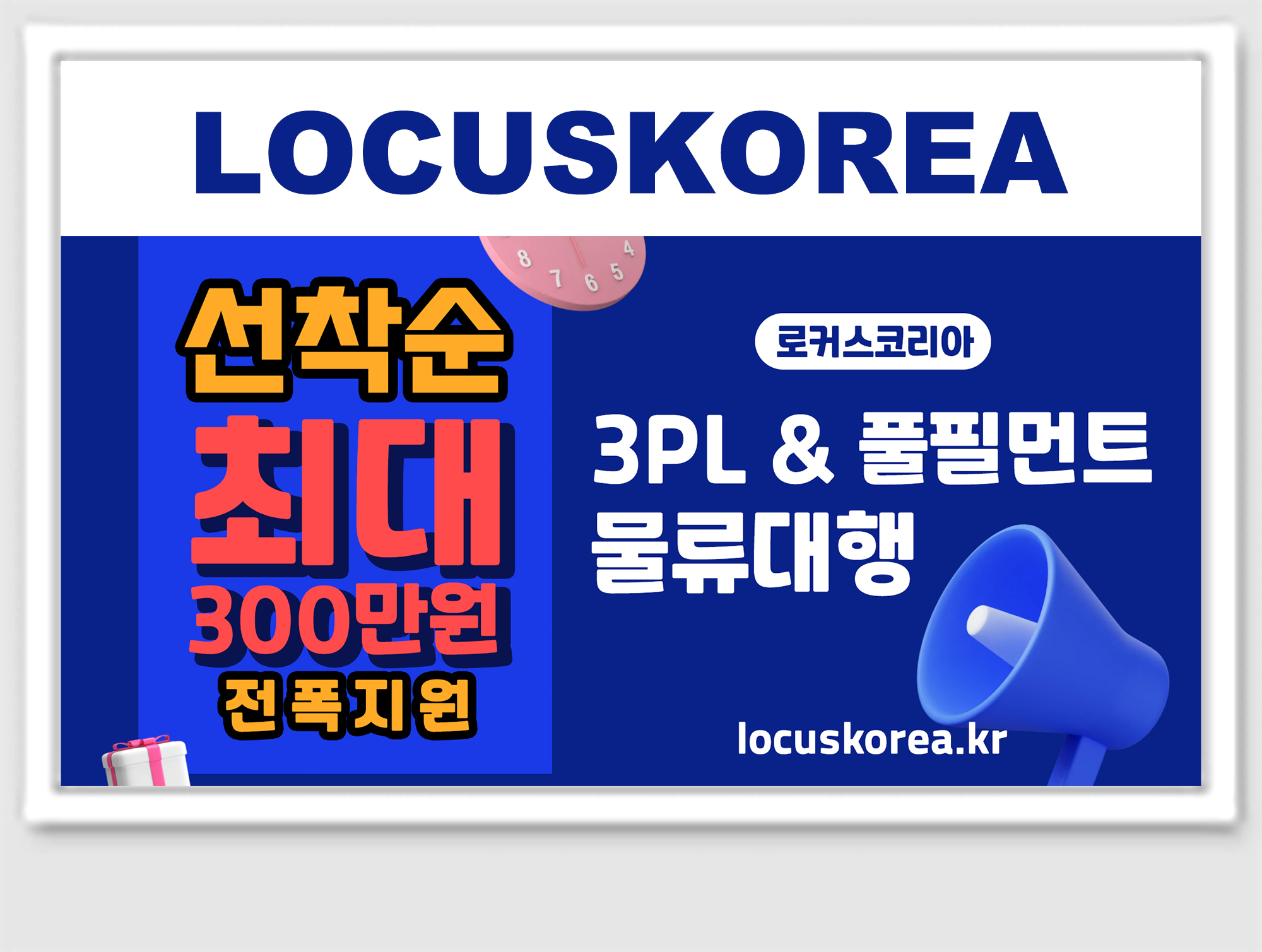 로커스코리아는 풀필먼트 서비스를 중심으로 솔루션, 수출입, 리테일 B2B 납품까지 전 영역을 지원합니다.